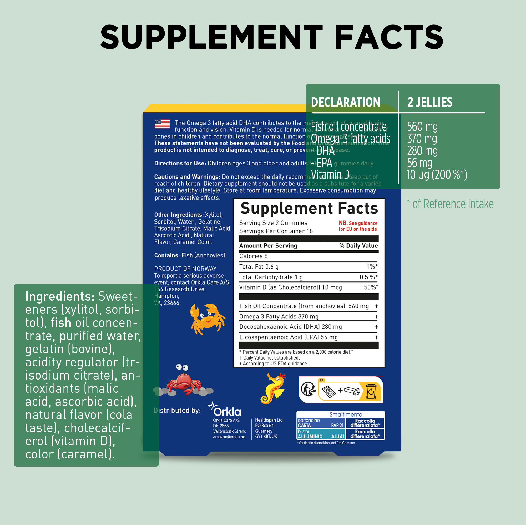 Kapsulat xhelatinoze në formë peshku nuk përmbajnë sheqer të shtuar dhe kanë aromë natyrale.